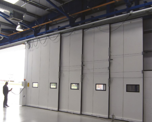 | Extra Large Sliding Doors | Very large straight sliding systems for medium to the largest openings, including hangars and large warehouses, offering virtually limitless width in manual systems and a full suite of glazing and pedestrian access options. |