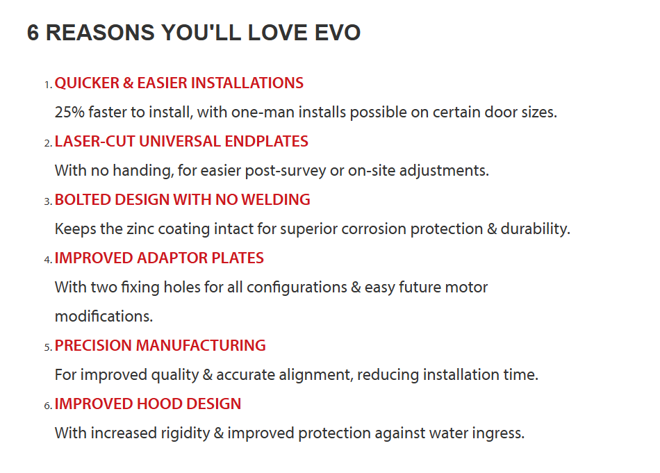 - Quicker and easier installations, with one person installs possible on smaller door sizes.