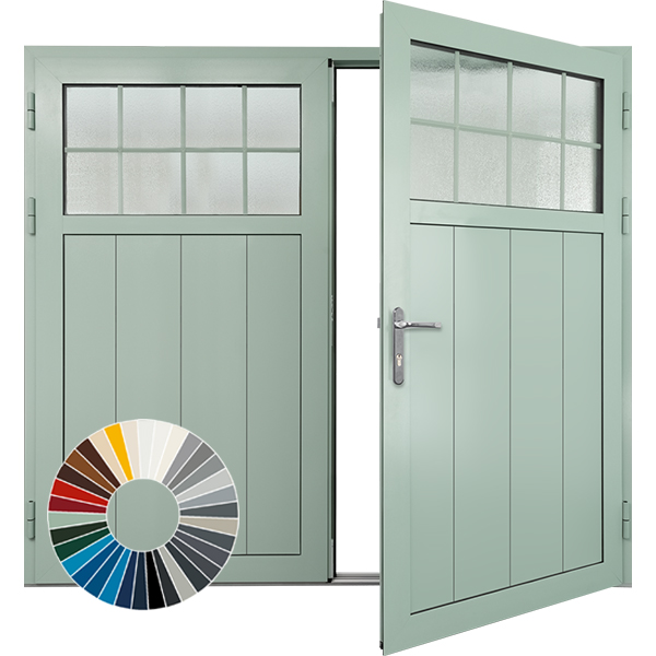 Side hinged garage doors supplied as ‘doorsets’, where the door panels, fixing sub frame, hardware, locking and all components are all factory assembled and tested provide one of the easiest garage doors for site installation by any competent DIY or trades person. ALL of our steel hinged garage and pedestrian doors will be delivered ready to offer into the garage opening and installed simply by fixing the sub frame to the aperture and then adjusting and finishing around the frame. We offer high quality steel side hinged doors in single skin pressed steel panels and then a wider range of double skinned insulated panels for increased strength, security and thermal and sound insulation for your garage. If your garage is heated in any way then insulated garage doors could save you a fortune over time..