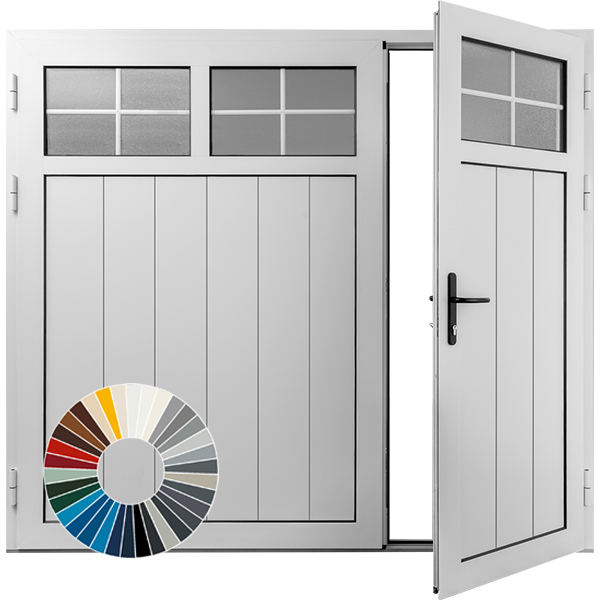 Matching pedestrian side access doors available in the exact same build specification, colours  and designs to match the garage doors..