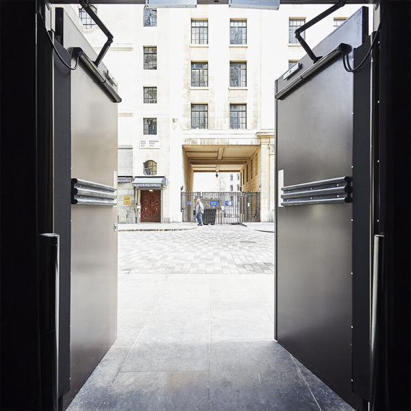 - Data centre and plant room entrances requiring large openings for equipment movement and a hardened shell for physical security.