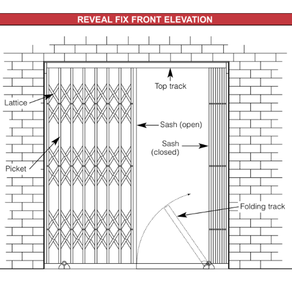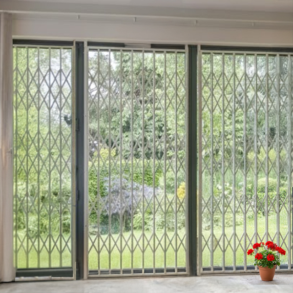 The collapsible security gates offer the option to remove the bottom guide track from the opening and sashes may be hinged to swing to the side at 90° or up to 270° leaving bi-folding door thresholds free from obstruction. (The hinge aside option requires a folding bottom track).